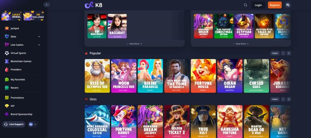 Players can enjoy various promotions like welcome bonuses, reload bonuses, and cashback incentives. K8 Casino accepts multiple cryptocurrencies, such as Bitcoin, Ethereum, Litecoin, Dogecoin, USDT, and BTC Cash, along with fiat currencies like USD and EUR.