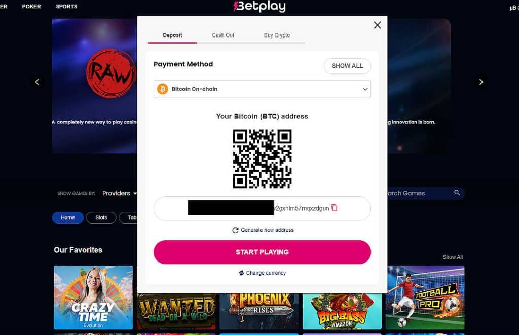 Betplay.io will send you a confirmation code to your email address. Enter this in the box and click ‘Verify Email’. On the next screen, click ‘Start Playing.’
