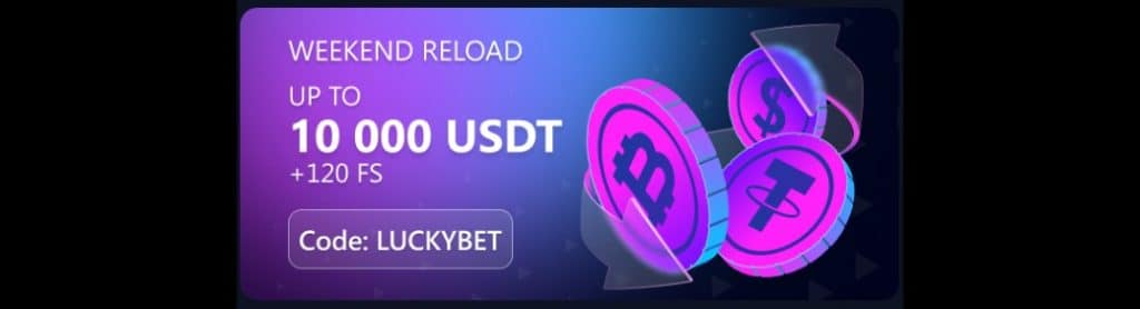 | Weekend Reload | 75% up to 0.5 BTC + 120FS | LUCKYBET | 40x | $40 |