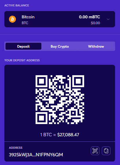 Once the promotion is active, click on the Deposit button and choose which cryptocurrency you want to fund your gaming account with.