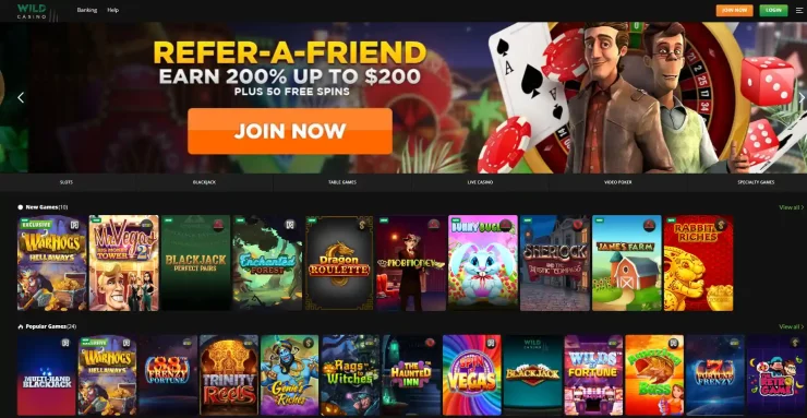 Wild-Casino offers a diverse selection of games, including online slots, table games, blackjack, video poker, specialty games, and live dealer games from top software providers such as Nucleus Gaming, Platypus Gaming, DragonGaming, and Betsoft.
