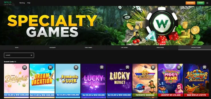 The “specialty games” category at Wild-Casino features lottery-style options like virtual scratch-offs and Keno . This section is perfect for those who enjoy quick games with the potential for huge instant wins.