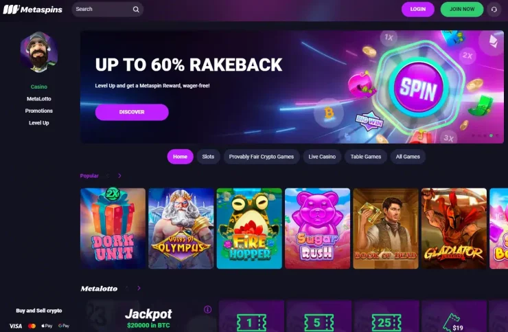 Metaspins provides a generous 60% Rakeback on wagering fees, allowing players to enjoy 60% cashback on their bets within the platform. With an extensive selection of over 2,500 games, ranging from slot machines to live casino options, there’s something for everyone.